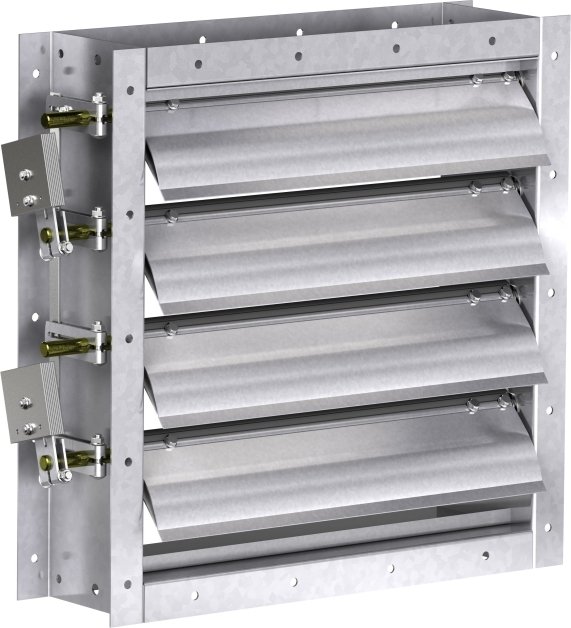 The HB-240 industrial backdraft damper features standard extruded aluminum airfoil blades for improved aerodynamic performance and reduced pressure drop in demanding airflow applications. Built for durability and reliability, it comes standard with Spark B and C construction to meet typical industrial safety requirements, with optional Spark A construction available for more stringent environments. The HB-240 delivers dependable one-way airflow control while helping facilities meet performance and safety standards.