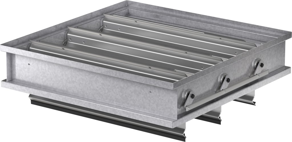 Model BR-40 is a pivoted backdraft damper engineered for low-velocity systems. Designed for horizontal mounting, it allows vertical downward airflow while preventing reverse flow when the fan is off. The flangeless configuration provides installation flexibility, and gravity-operated blades deliver reliable, power-free backdraft protection.