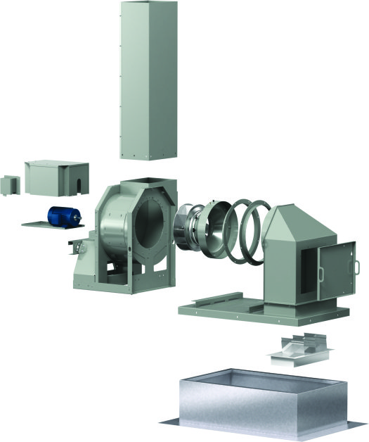 Model FJ is available in both belt-driven and direct drive configurations for AMCA Classes 0, I, and II, supporting a wide range of performance requirements. Offered in standard 7 ft (2 m) and extended 10 ft (3 m) system heights, the fan and stack assembly is factory tested to withstand 40 PSF wind loads (equivalent to 125 mph) without the need for guy wires—simplifying installation and enhancing structural reliability. Options include spark-resistant construction, multiple fan mounting arrangements, EC motor technology, and factory-installed VFD controls to support efficiency and application flexibility. Typical applications include food packaging, welding, paint systems, wastewater treatment, and other industrial exhaust processes requiring dependable, high-velocity discharge.