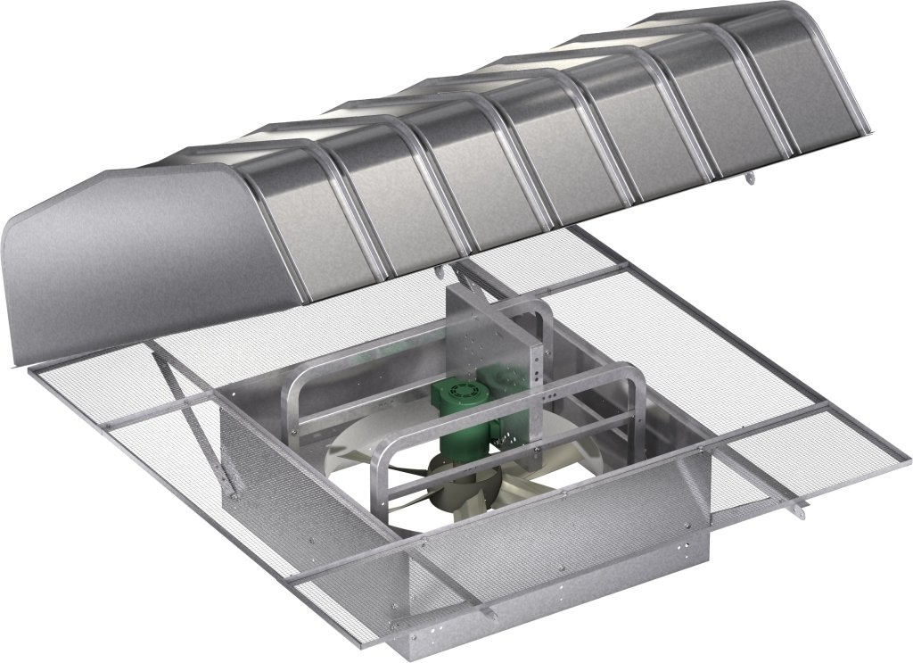 Model RE2 is a direct-drive, roof-mounted axial fan designed for exhausting relatively clean air in commercial and light industrial applications. It features a fabricated steel propeller for durable performance and is available with a fabricated hood-style housing constructed of aluminum or steel to meet project-specific environmental and longevity requirements.