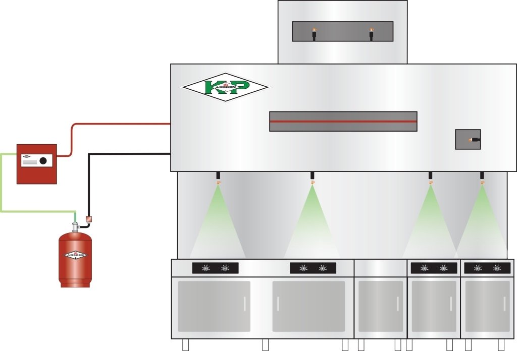 Appliance-specific fire suppression is a wet chemical system designed for applications where cooking equipment layout is fixed with minimal anticipated changes. Discharge nozzles are selected and precisely aimed at identified hazards on each appliance, providing targeted protection and optimized coverage. The low-pH chemical agent is non-corrosive to stainless steel and can be safely cleaned up with water and a sponge, helping reduce post-discharge downtime and simplifying kitchen restoration.