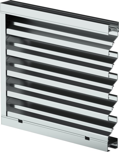 Manufactured of heavy-gauge aluminum, Model ESJ-155 is well suited for interior or exterior applications requiring high free area and low airflow resistance within a narrow frame profile, supporting efficient airflow performance while maintaining a clean, space-conscious design.