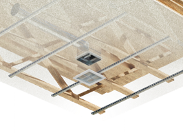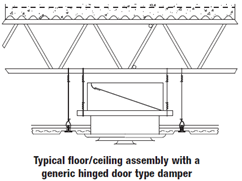 Some floor or roof/ceiling assemblies are tested with manufacturer specific dampers that are specifically listed in the listing agency’s Product Directory. These are typically installed in combustible ceiling designs (i.e., wood joists or wood trusses) using a fire rated gypsum ceiling assembly.